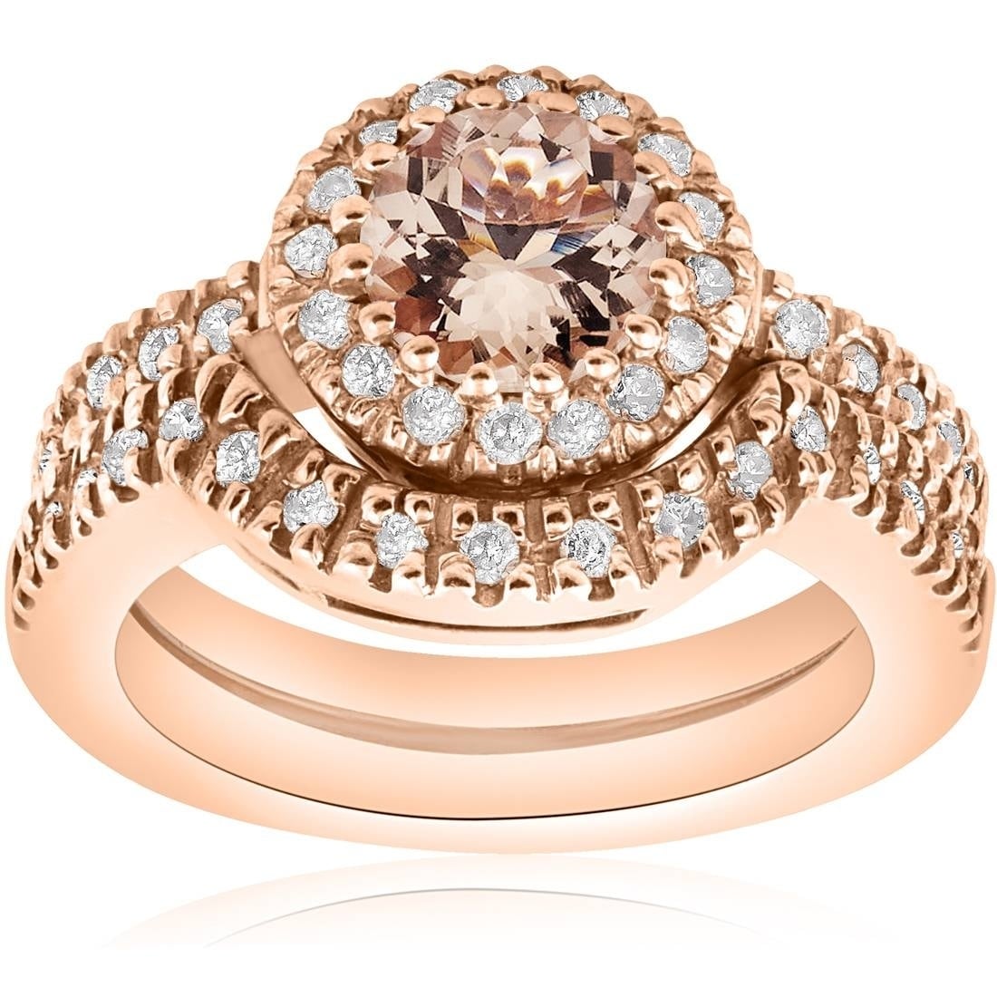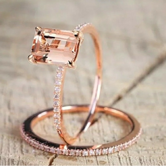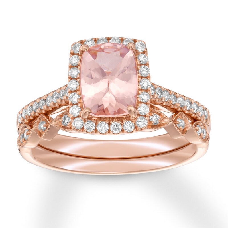 10k rose gold 1 1/3 ct. Solid 10k rose gold oval round pink simulated morganite and white diamond engagement ring or fashion band prong set solitaire shaped ring (2/3 cttw) $297.00 $ 297. Thanks to morganite's popularity and wide appeal, it's available in many types of jewelry. 2 carat princess cut morganite and moissanite trio wedding ring set in rose gold.