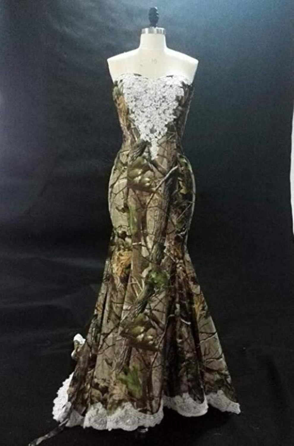 583 items found for camo mermaid wedding dresses. Realtree camo mermaid wedding gown with lace and sweep train. From sweetheart necklines to long sleeves and plunging backs, you're sure to look like an ethereal goddess in one of these timeless pieces. Browse beautiful mermaid wedding dresses and find the perfect gown to suit your bridal style.
