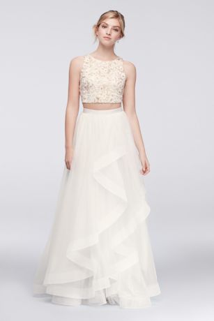 Shop david's bridal stunning collection of two piece prom dresses 2020 & crop top dresses, which includes two piece dresses in all sizes, colors & styles!