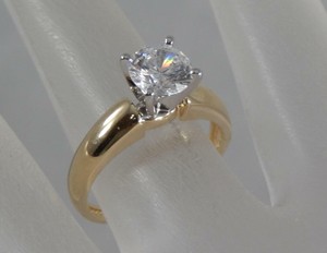 Cubic zirconia white gold engagement & wedding ring sets. 1 carat round cubic zirconia engagement ring with channel set rolled baguettes in solid 14 karat gold band. Cubic zirconia wedding ring sets are and affordable alternative to expensive diamond wedding sets. Item measures 13 mm wide x 7 mm high x 39 mm long.