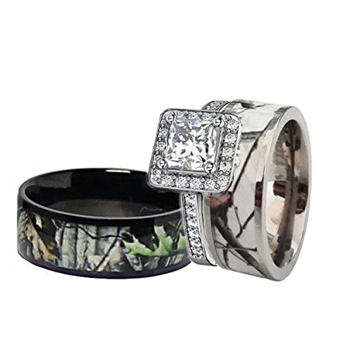 Womens 5mm pink brown camo tree with cubic zirconia titanium engagement wedding band ring comfort fit (pink, 7). Kingswayjewelry 4pcs his hers camo pink radiant stainless steel sterling silver wedding ring set (size his 10; Camo ring sets for couples.