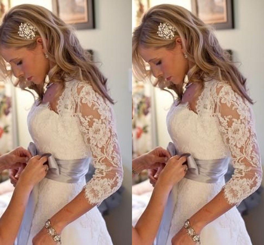 Detachable wedding cap sleeves keyhole back lace wedding dress neckline.