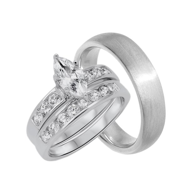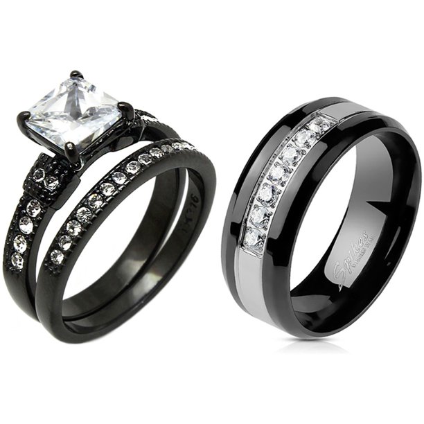 Laraso Co Cz Engagement Wedding Ring Set For Him And Her Couples Bands For Men Size 11 And Women Size 7 Walmart Com Walmart Com from i5.walmartimages.com
